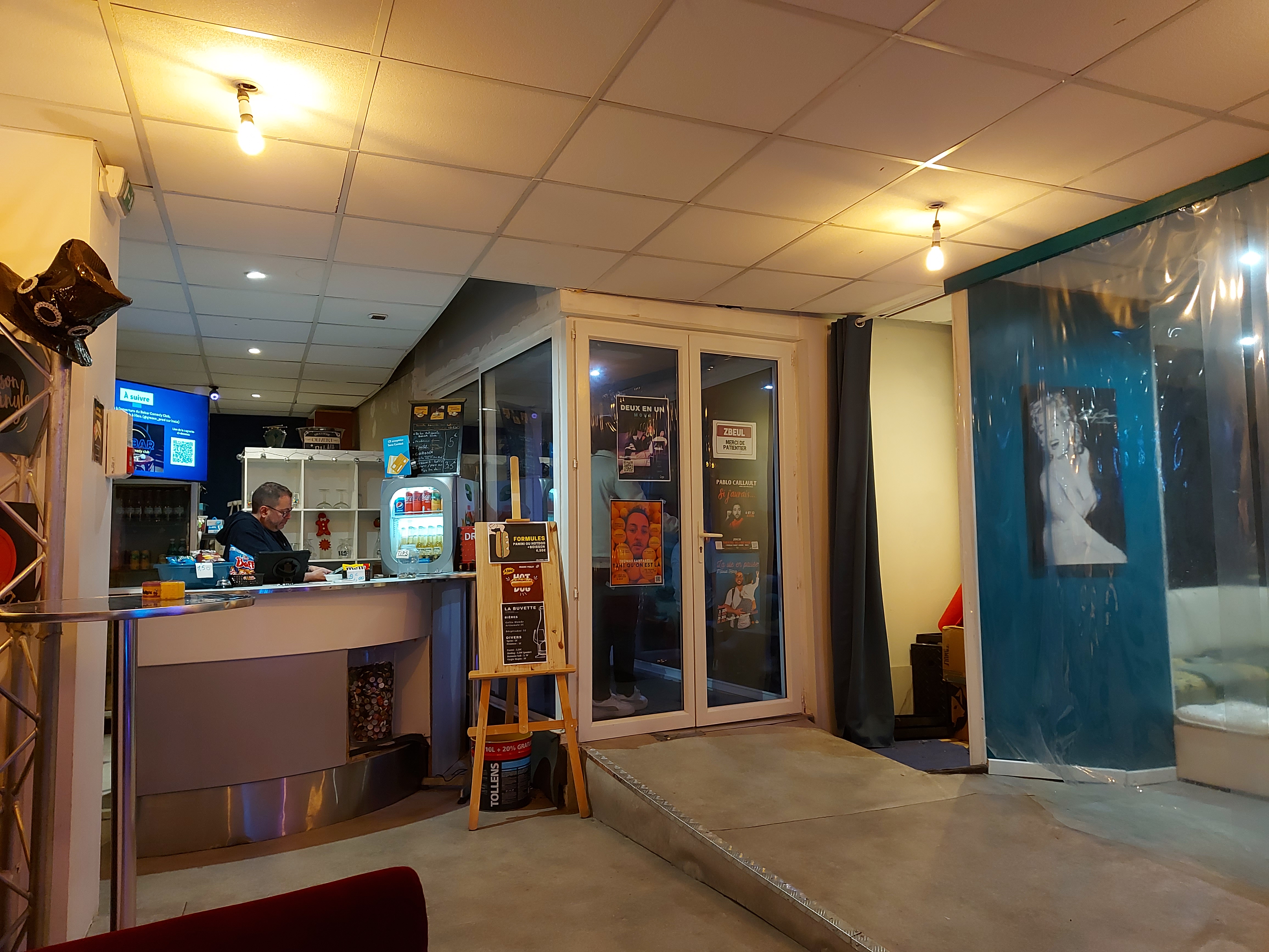 Oui, cet endroit existe ! Et c'est ouvert ! En fait, cet endroit est un club de comédie debout ! Et du théâtre amateur parfois. Stand-ups le vendredi ! Assurez-vous d'arriver tôt, les places sont courtes. Des gens très sympathiques ! Des installations un peu sobres, mais cela le rend peut-être encore plus caractéristique !