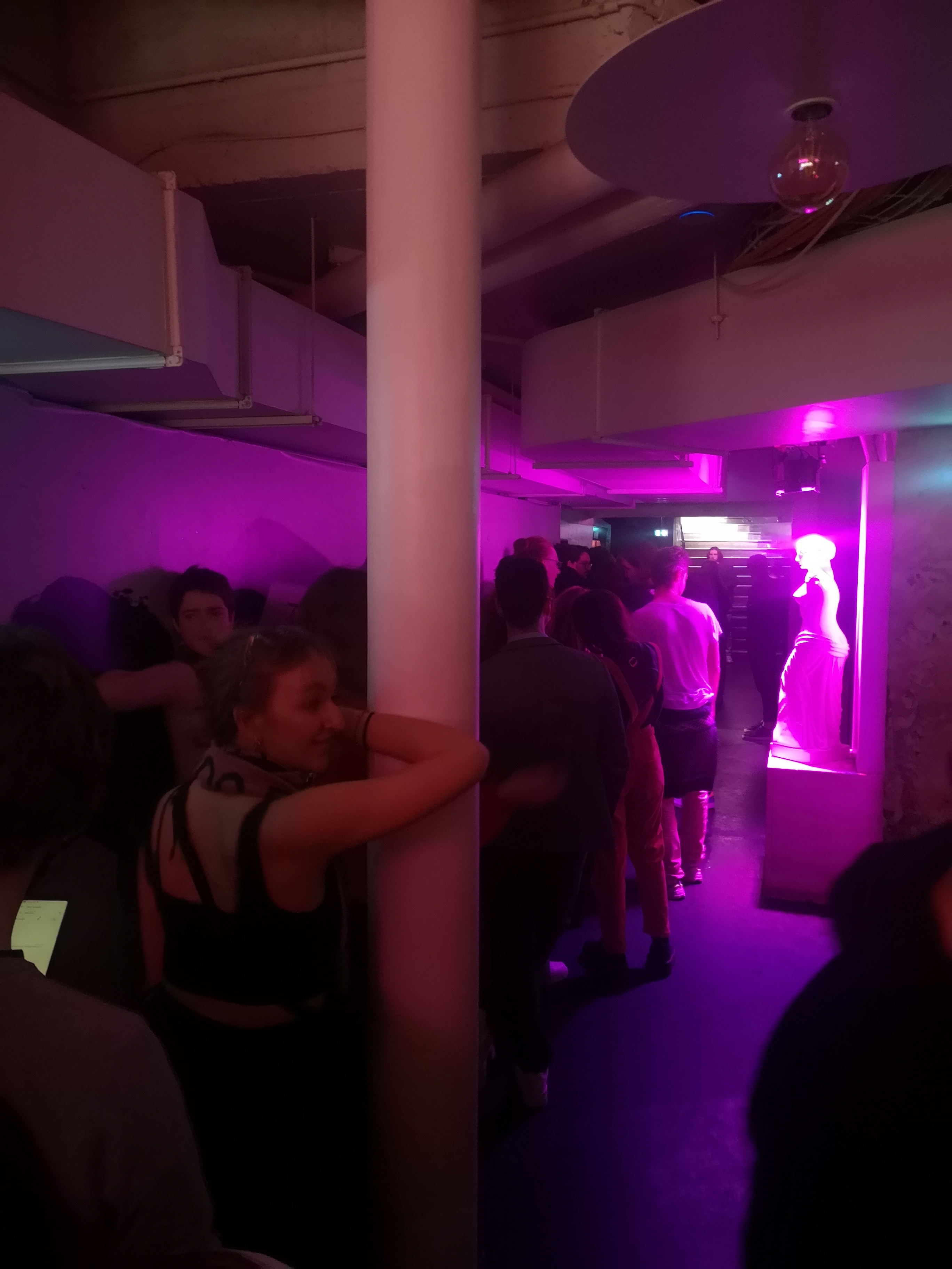 Clientèle très jeune, blanche, hétéro qui n'a aucune notion du clubbing. Elle est irrespectueuse, imbibée, banale, inintéressante. L'accueil s'est mis au niveau (à moins que ce ne soit l'inverse) : files d'attente interminables dehors (malgré l'achat du billet en avance) puis pour le vestiaire (prévoir du cash, 4€ pour un casque de vélo... et de la patience pour récupérer ses affaires, l'inorganisation est totale). Le sol est collant, les toilettes bondées. Seule la sono sort du lot (c'est pas difficile).